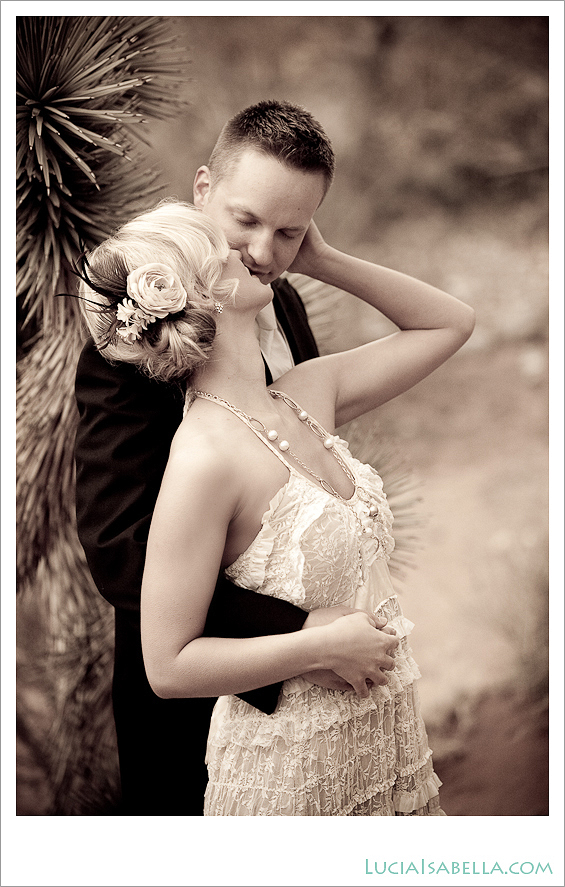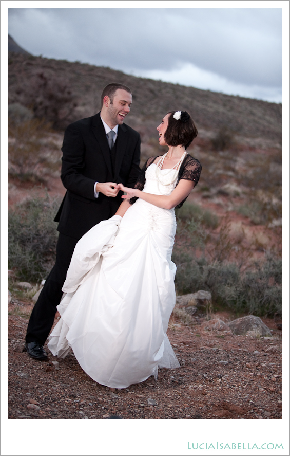 Our first volunteer models were Aric and Casey, themselves photographers who were just married last Fall. Casey dragged her own wedding dress through the brambles and kept her smile glowing despite the winter desert cold. And it was bitterly cold! Lucia and I were bundled in ski jackets and I still almost lost my fingers to frostbite. Casey and Aric, I don’t know how you guys survived it, but thank you so much for your sacrifice, and for your patience with my novice attempts at posing.